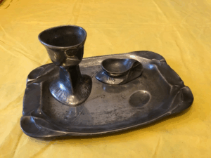 There was a main artist and designer who worked with Engelbert: Hugo Leven. The collaboration between Engelbert and Leven led to the development of the first collections and services until 1901. This is the period of floral decorations in relief made by Leven. In 1900, during the Paris worldwide exhibition, Engelbert Kayser received a gold medal as the main designer of Kayserzinn factory, whose production increased a lot because of this important praise. In this period Leven began to use clay and plasticine and developed a new technique called “Daumendrückrelief”, by which the relief was less perceivable and decorations appeared nearly engraved, in bas-relief. From 1902, when Kayserzinn got a second worldwide praise, to 1904 more than 100 new models were invented and Karl Berghof presented innovative conic and cylindrical forms.